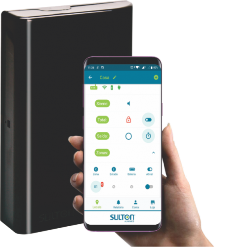 Central de alarme IOT com comunicação wifi, controlada pelo aplicativo SULTON WIFI por intermédio do servidor na internet.